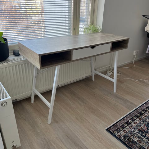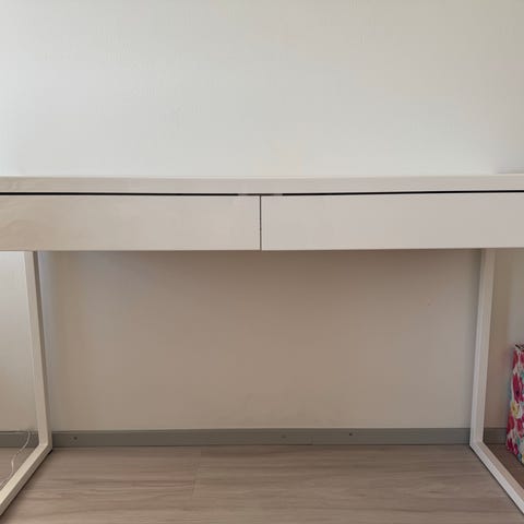 Valkoinen työpöytä/ kahdella vetolaatikolla. Hyvä kunto.