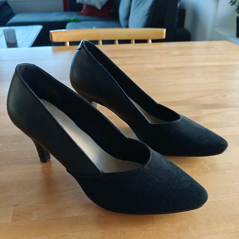 Kauniit vaaleanruskeat aitonahka korkokengät, joissa musta korko. Siistit ja elegantit, sopivat juhliin tai arkeen.