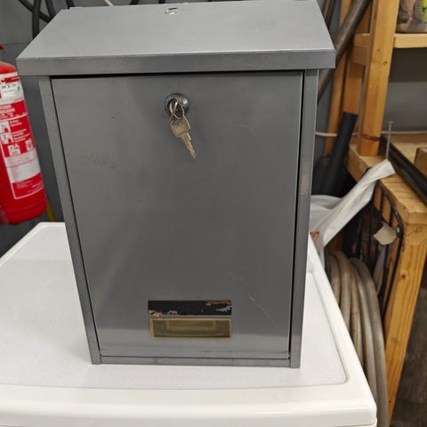 Punainen metallinen postilaatikko, soveltuu ulkokäyttöön. Varustettu lukolla ja postin noutoaukolla. Sopii koti- tai pihaympäristöön postin vastaanottoon.
