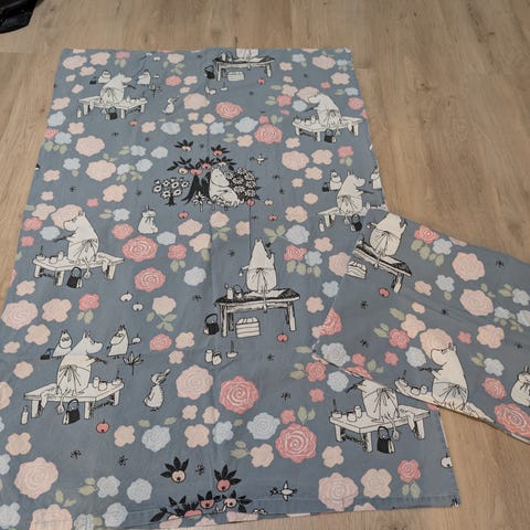 Vähän käytetty Muumi-pussilakanasetti, Finlayson. Aikuisten koko.