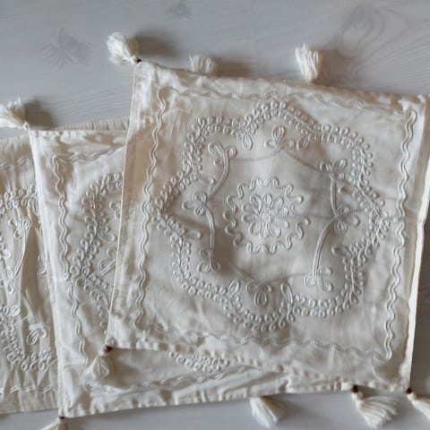 Kolme Ikean koristetyynynpäällistä. Vähän käytetty. Kaksi vaaleanpunaista ja yksi vihreä. Myydään settinä yht.6e.