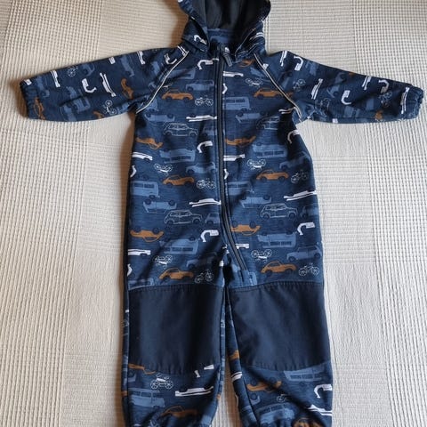 Autokuvioinen softshellhaalari, koko 92. Siisti ja ehjä. Jalkalenksut aavistuksen kuluneet. Kissakoti, nouto Leppävaarasta.
