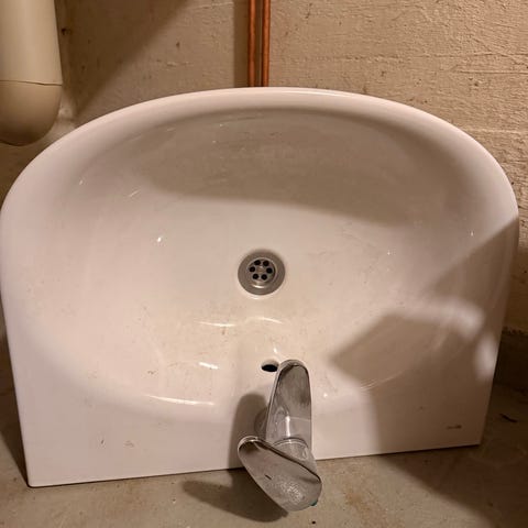 Vasen sivu: takanurkasta pieni pala pois (kuva). Käyttämätön allas.