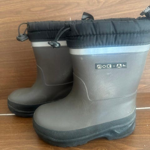 Nokian kumisaappaat, koko 27. Yhdellä lapsella käytössä olleet, käytön jälkiä ja kulumaa löytyy, mutta täysin vettä pitävät ja hyvät saappaat vielä seuraavalle käyttäjälle.