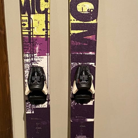 Sukset 121 cm, monot kokoa 34. Kypärä mukana.