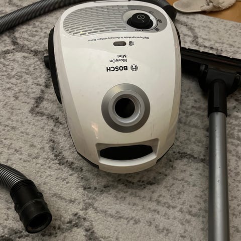 Bosch MoveOn Mini pölynimuri, punainen väri. Kompakti ja kevyt malli, helppo käsitellä. Varustettu imuletkulla ja suulakkeella. Soveltuu kotitalouskäyttöön lattioiden ja mattojen siivoukseen. Mukana pölypussi.