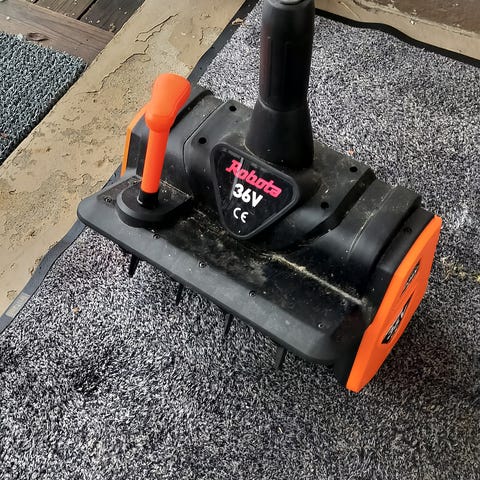 Pienempi Robotan akkukäyttöinen lehtipuhallin, joka toimii yhdellä 18 V:n akulla. Soveltuu pihojen puhdistuksen lisäksi myös esimerkiksi pakettiautossa lumen putsaamiseen.