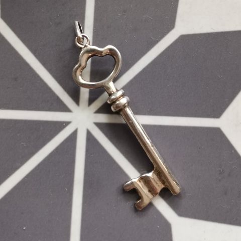 Hopeinen avainriipus käsityötä, Hekaten labyrintti. Korkeus lenkkeineen 65 mm, 925-leima.