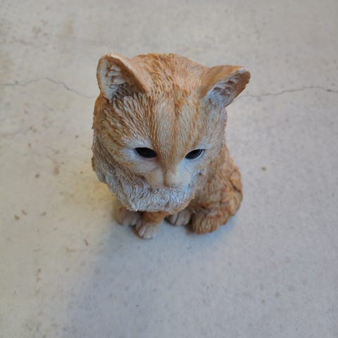 Kissa koriste. Kiveä. Pieniä jälkiä, näkyvät kuvissa.