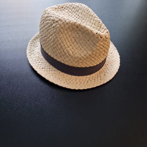 Ihana helle olkihattu pojalle kokoa 48/50. Napakka ja menee pitkään.