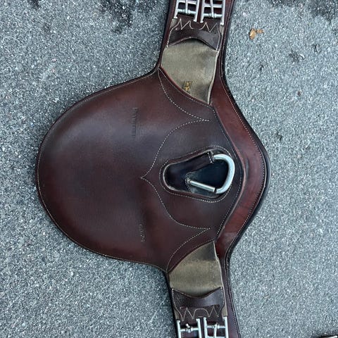 Omalta hevoselta tarpeettomaksi jäänyt "minipanssari" - kouluvyö mustaa nahkaa. Käsityönä Suomessa valmistettu (Sarania), nahka Tärnsjön plattia ja soljet ruostumatonta terästä. Solkien päiden väli 70cm ja koko vyön pituus 81cm. Leveys leveimmältä kohdalta 23cm.