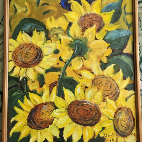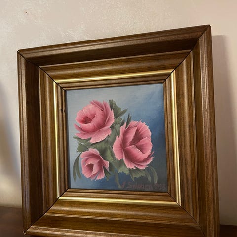 Kukkakimppu maljakossa maalaus vuodelta 1987