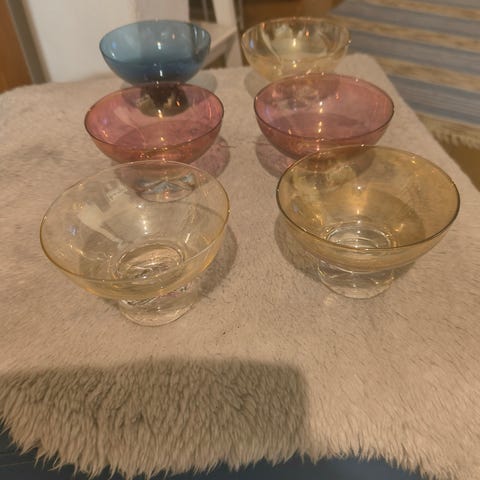 Hyväkuntoiset uudenveroiset jälkiruokamaljat.