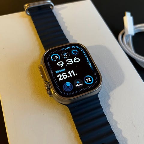 Myyntiin loistokuntoinen Apple Watch Ultra 2, ostettu 7/2024. Kuitti löytyy. Näyttö naarmuton, framessa hyvin pientä kulumaa, joka näkyy kuvissa. Sisältää myyntipakkauksen sekä toisen rannekkeen (ei applen). Akun kunto 100 %.