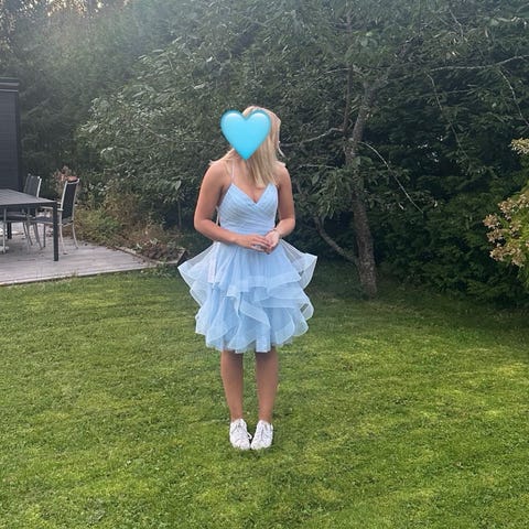 Zazabella juhla- tai cocktailmekko sinisessä värissä, koko 34. Mekko on valmistettu kevyestä materiaalista ja siinä on kerroksellinen helma sekä korsettimainen yläosa, jossa on nyöritys selässä. Sopii erityistilaisuuksiin ja juhliin.