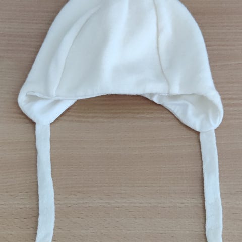 Vauvan valkoinen villamyssy, pään ympärys 44/48 cm, mukaan villasukat