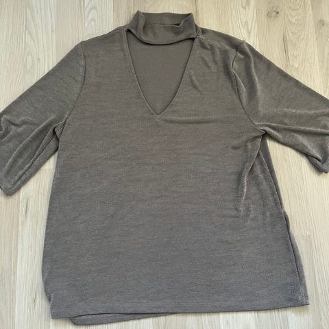 Nätti trikoopaita. Mustaa viskoositrikoota. Koko L. Laput leikattu pois,mutta pesu ilmeisesti käsin kun on noita koristeita kaula- aukossa.