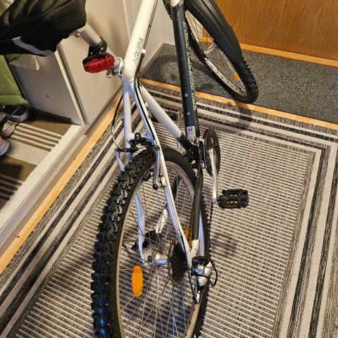Vaihteet säädetty yms testattu kaikki toimii. Jarrut on vaan hieman tehottomia. Toimii kumminkin. Renkaat hieman reunoista halki. 3*8 shimano vaihteet. Levyjarrut.