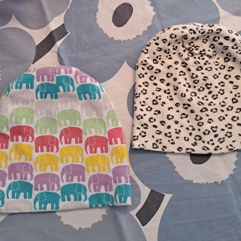 Kaksospojilta jääneet pieneksi ihanan lämpimät metsäkuvioiset pipot. Lämpimät talvella. Kokomerkintä s, kuvassa näkyy sivun mitta eli ympärys n 42-43cmollut käytössä n 1-2v iässä