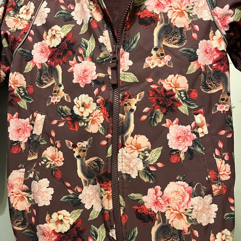 Lasten softshellhaalari koossa 110cm. Vetoketjun vieressä röyhelöä, haalari on todella hyvässä kunnossa, ei moitteita. Molemmat jalkalenksut myös tallessa.