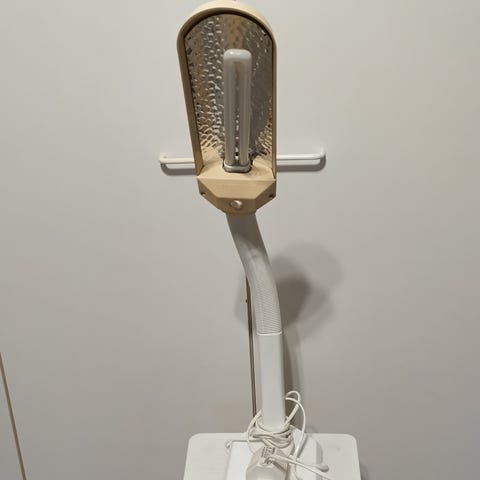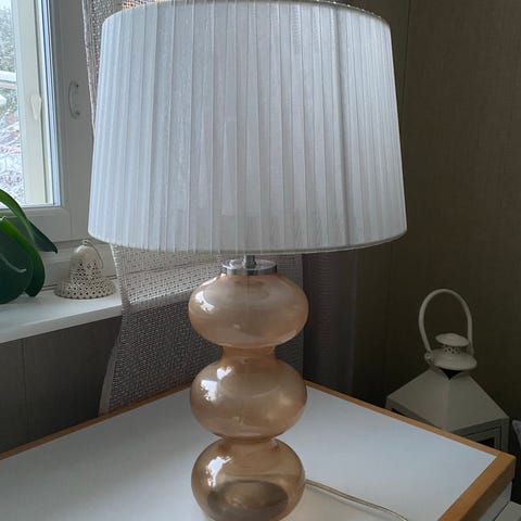 Pöytälamppu tehty kattolampusta.