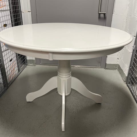 Valkoinen retro ruokapöytä myytävänä. Yleiskunto ikäisekseen hyvä. Pari reunakolhua sekä jaloissa muutamia jälkiä. Jalat irroitettavat. Kannen päällinen siisti.