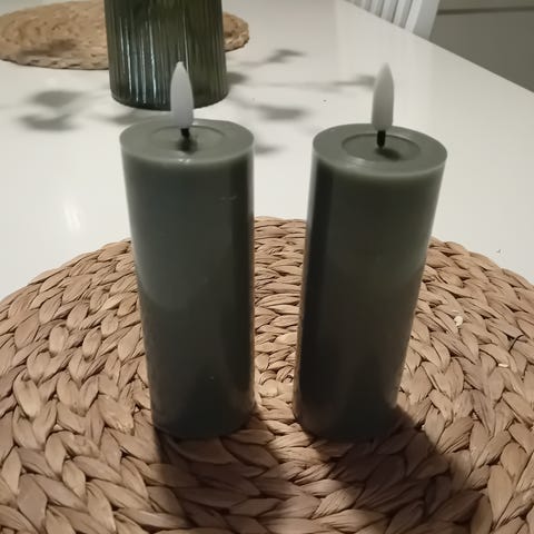 Valkoinen ledvahakynttilä. Toimii 3:lla AA-sormiparistolla.