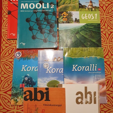 Lukion kirjoja ajalta 2019-2022. Yksittäiset kirjat 10€ per + posti. Koko kasa menee 50€. Kunnoltaan ovat aika mintti tai käytettyjä
