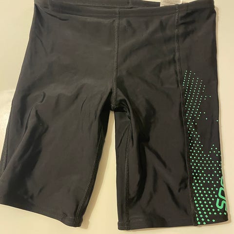 Lasten mustat Speedo uimahousut koossa 128. Vyötäröllä nauha, etukappale vuoritettu. Kunnossa ei huomautettavaa.