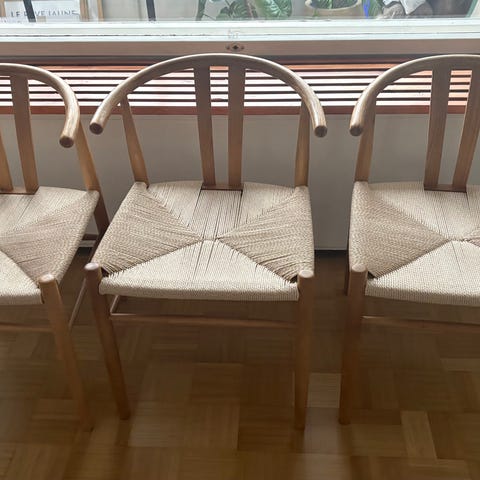 Myydään tarpeettomaksi jääneet ruokapöydän tuolit 2kpl yhteishintaan 120€. Pari vuotta vanhat, mutta olleet vähällä käytöllä. Kunto kuin uusi. Koiratalous, vaikka koiralla ei ollut näille tuoleille asiaa. Pintamateriaali kangasta, väri antrasiitin harmaa. Mukavat istua ja musta swing metallijalka. Istuinkorkeus 48cm. Nouto Espoosta Latokaskesta.