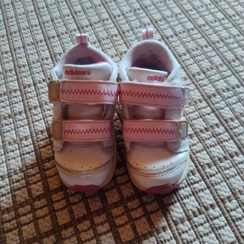 Myydään Adidaksen valkoiset lenkkarit koossa 22. Käytetyssä siistissä kunnossa. Jotain pieniä jälkiä saattaa aran värin vuoksi olla, mutta en löydä mitään isompaa moitittavaa. Pohjallisen pituus 14 cm.