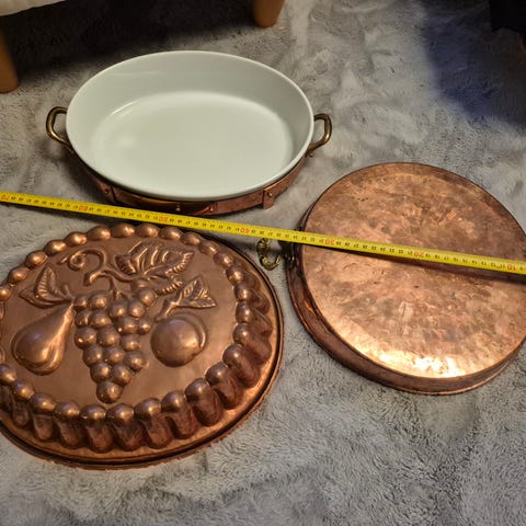 Kupariset ja metalliset keittiöastiat ja tarvikkeet erikokoiset