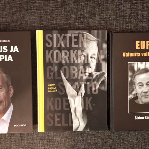 Sixten Korkman Talous ja Utopia kirja. Kirja käsittelee talouden ja yhteiskunnan kehitystä, talouspolitiikkaa sekä tulevaisuuden näkymiä. Teos on suomenkielinen ja soveltuu talousaiheista kiinnostuneille lukijoille.