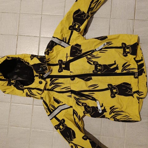 H&M lasten karvavuoritakki, koko lapussa 104 cm, vastaa mielestäni 98 cm, harmaan musta väri. Takissa on useita taskuja, materiaali puuvillaa, polyesterivuori. Pientä kulumaa molemmissa hihansuissa.