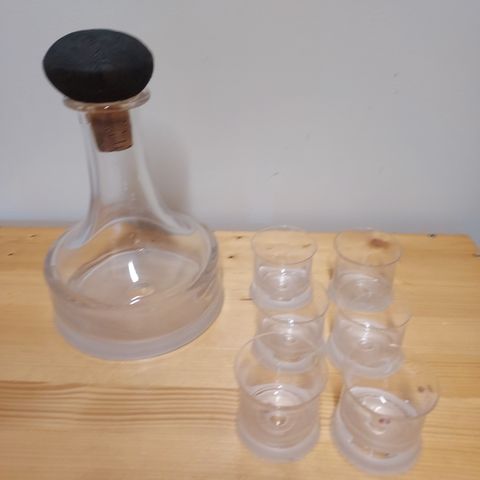 Iittala Kapteenin Pöytä karahvi ja 6 kpl snapsilaseja T.Wirkkala sign.