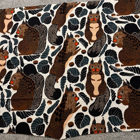 Marimekon Elokuun varjot puuvilla-pellavakangas.