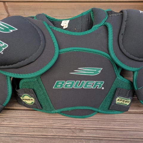 Bauer Supreme 3000 jääkiekon hartiasuojus, koko S/P. Suojus on musta ja harmaa, suunniteltu jääkiekon harrastajille. Tarjoaa suojaa hartioille ja ylävartalolle pelin aikana. 130cm->