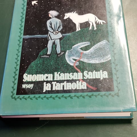 Myydään teos Suomen kansan satuja ja tarinoita, julkaistu vuonna 1955 Suomalaisen Kirjallisuuden Seuran toimesta. Teoksen on toimittanut Eero Salmelainen, julkaissut Jouko Hautala ja kuvittanut Heljä Lahtinen. Tämä tiilenruskea kovakantinen versio on varustettu kauniilla kultapainatuksella sekä kannessa että selkämyksessä.
