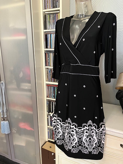 Myynnissä upea joustavaa laskeutuvaa rypistymätöntä polyesteriä oleva kauttaaltaan kuvioitu mekko