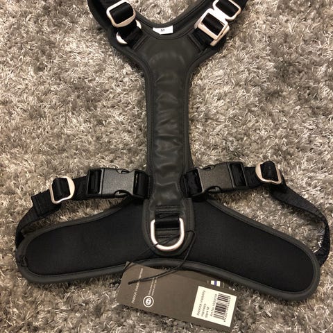 Hyvät, tukevat ja kunnolla heijastavat valjaat syksyyn! Meille jäi isommat käyttöön.