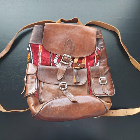 OSTETAAN modernin mallinen yksinkertainen aitoa nahkaa oleva musta tai tummanruskea tai konjakin värinen reppu