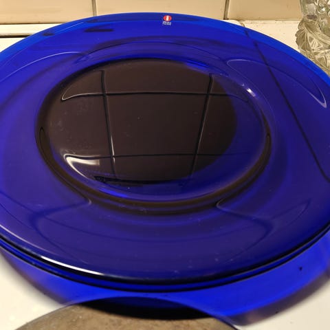 Iittalan kopoltinsininen ruokalautaset ja leipälautaset. Ehjät 12 kpl yhteensä. Käytön jälkiä.