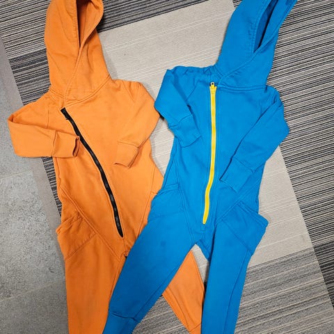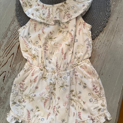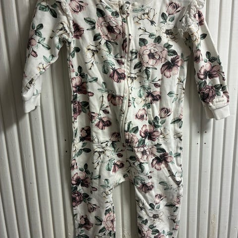 Myydään kuvien mukaisessa kunnossa oleva Newbie Kukka jumpsuit hupulla 92