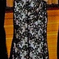 Päällinen pitsikuviota, alusmekon helmassa pieni langanpurkauma. Muuta vikaa en löytänyt. Käytetty, hyvässä kunnossa kuitenkin.