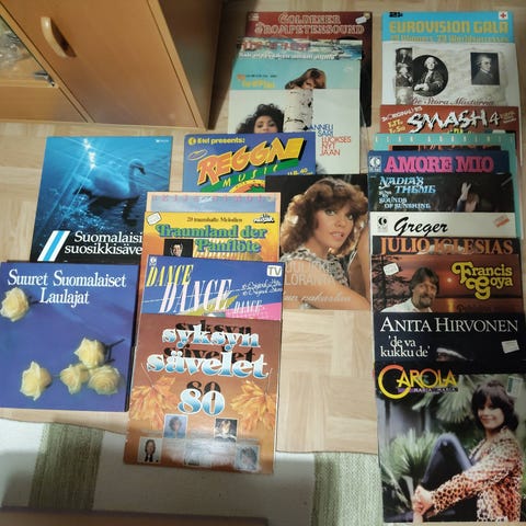 Kotimaista tanssi musiikkia n 80 kpl cd Jari Sillanpää Yölintu Agents Souvarit ym ja n 43 kpl ulkomaalaisia cd esim Gary Moore Eros Ramazzotti Eric Clapton Foreigner ym ja Serranon perhe 1 kausi (4 levyä) ja pari elokuvaa myydään kaikki yhdessä erässä