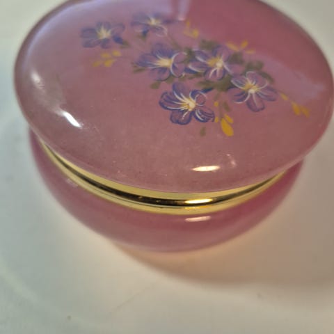 Myynnissä tinapinnoitteinen, metallinen, ehjä, sinisellä sametilla vuorattu rasia.