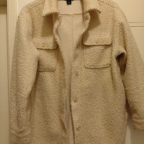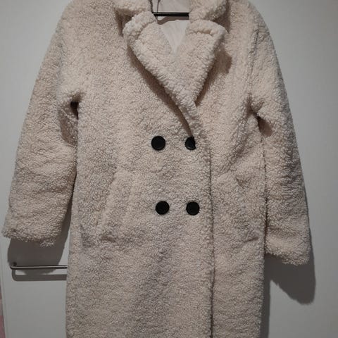 Kerran pidetty valkoinen teddytakki, hyvässä kunnossa