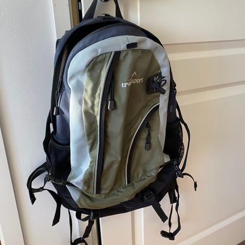 Myynnissä käytetty Trek travel 30l reppu. Muutoin ehjä ja siisti, mutta kantohihnat ommeltu tiukemmin kiinni.
