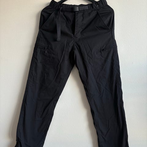 Tuxer merkkiset joustavat keveät ulkoiluhousut koko s. Housut joustavat vyötäröltä takaa mukavasti. Edessä ylhäällä vetoketjutaskut joista toinen on vetästy rikkijumiin. Alempana reilut taskut, näissä molemmissa ehjät vetskarit. Lahkeissa vetskarit millä saa lisää leveyttä. Toisessa lahkeessa kevätretkellä makkaratikun polttamatat pienet reiät. Kangas on tosi hyvin joustavaa. Hyvät retkeilyyn ja muuhunkin liikuntaan. Pojalle liikuntatunnille ostetut. Ovat olleet korkeintaan 5 kertaa päällä jos sitäkään. Uutena 69.90. Nyt edullisesti. Ainut vika on toisen ylätaskun vetskari ja makkaratikun tekemät kaksi pientä reikää.
