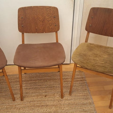 Myydään 6kpl vanhoja tuoleja. Vaatii fiksausta, eli istuin osan vanerit repsottaa. Tarjoa.
